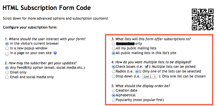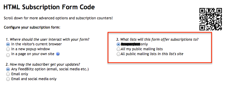 Now click the Form Code button and this will open a new screen where you can manage the subscription options for this mailing list.